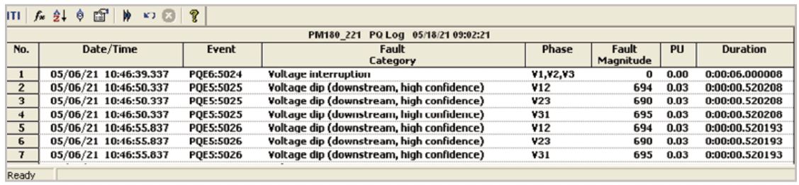 Providing this detection is not trivial and is not featured by most power analyzers on the market. The PM180 uses synchronous voltage and current waveforms, recorded before and during an event, to determine the location of the disturbance source. Depending on the characteristics of the fault, the device can apply different methods of analyzing the collected data to give the most reliable indication of the direction of the fault.